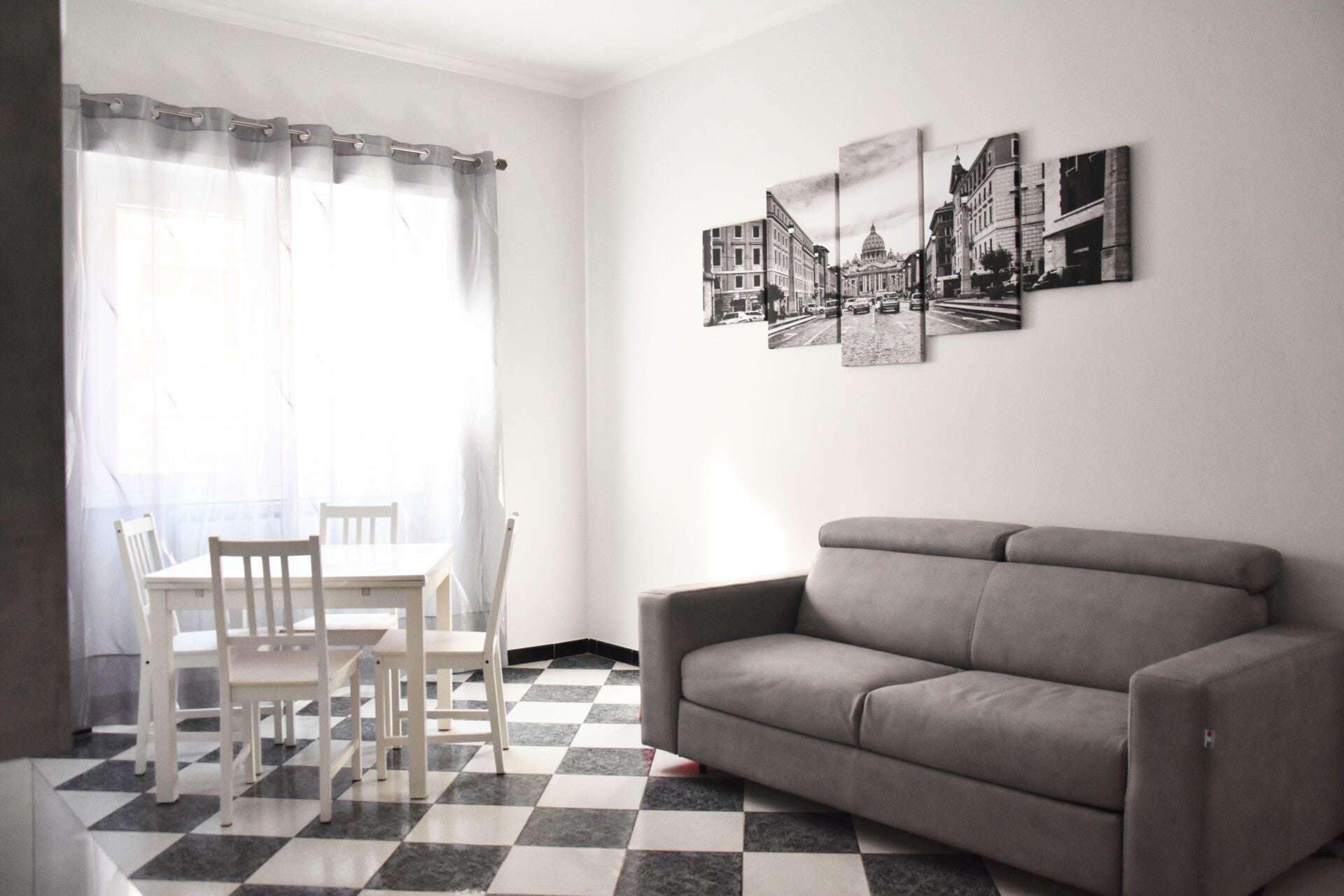 Accogliente appartamento per 2–4 persone, a soli 30 metri dalla metro A Battistini. Ideale per famiglie, turisti e studenti, con cucina attrezzata, soggiorno con divano letto e balcone.